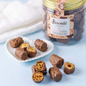 Tubinho de biscoito wafer com chocolate ao leite